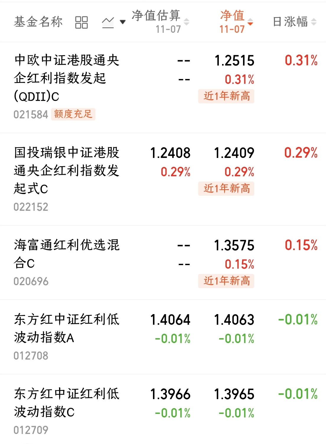 $中欧中证港股通央企红利指数发起(QDII)C(OTCFUND|021584)$今日上涨0.31%,最近涨不少