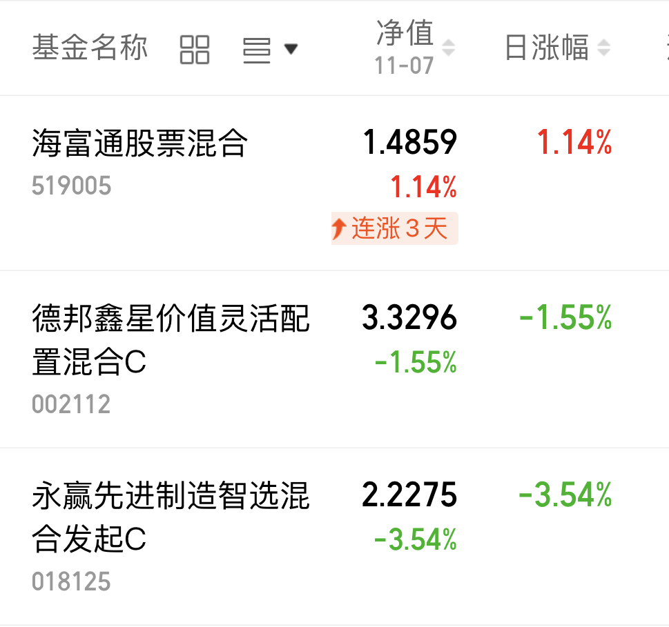热门基金净值播报。