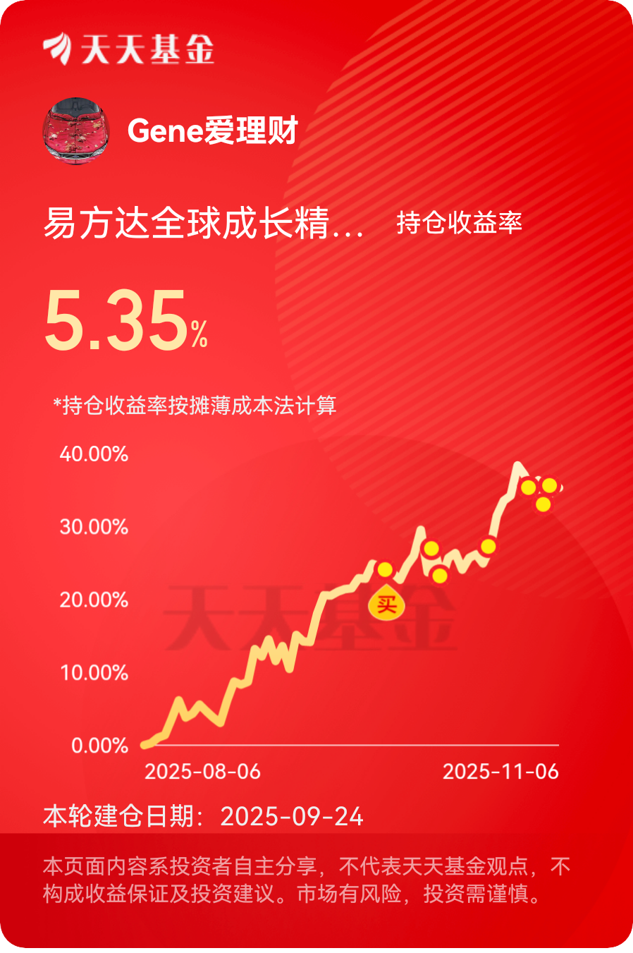 现有美股仓位在预期占比50%,继续逢低加仓。 $易方达全球成长精选混合(QDII)人民币C$