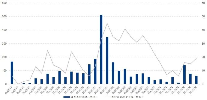 如果是从基金公司的角度而言,FOF今年起已经进入了布局的黄金阶段,虽然新发规模是一个季度不如一个季度,但这三季度发行数量没有减少,各家都还是相对积极的。