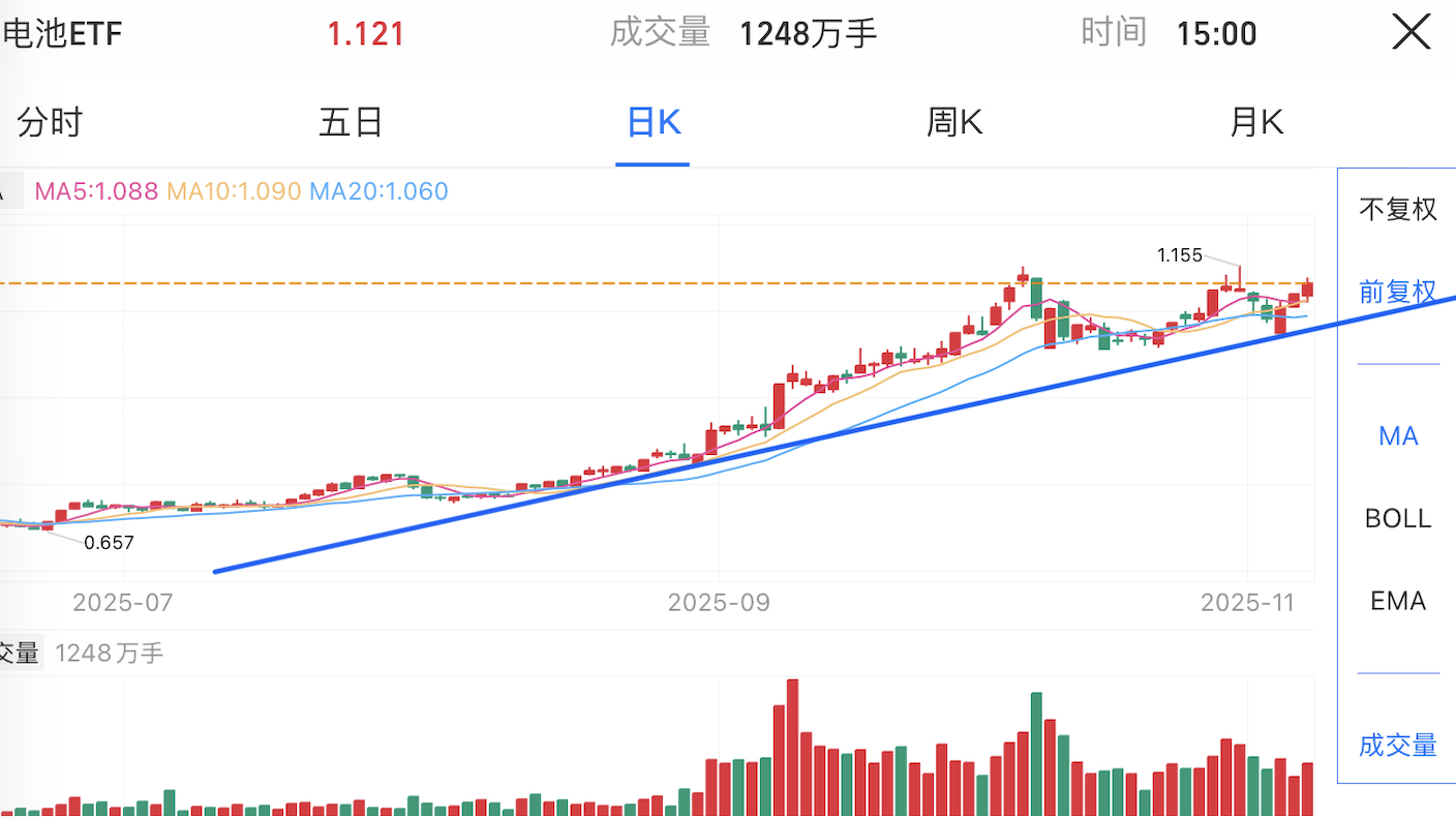 人形机器人、电池此前有一波较大行情,后在形成超买后回落,这几日在关键支撑位反弹,守住关键支撑,电池已经涨回前高,如果突破,那么再次开启上行模式。