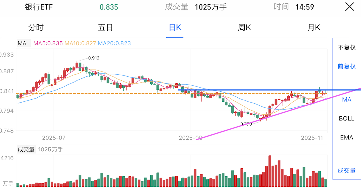 银行在经历一段短期回调后出现放量反弹,突破下跌趋势线,这几日受阻于前高压力位,突破才能反转向上,开启新行情。