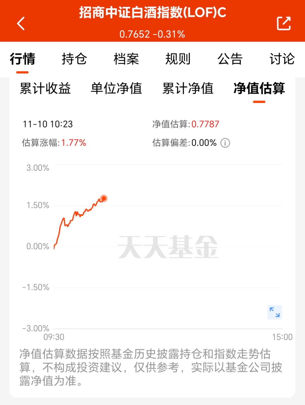 今日A股市场冲高回落,个股出现明显分化行情,从盘面来看,消费龙头白酒继续逆势上涨,其中$招商中证白酒指数(LOF)C(OTCFUND|012414)$目前实时估值大涨1.77%,持仓聚焦于白酒消费龙头企业,在当下备受政策大力支持,从技术面来看,整体呈现W双底形态,当前估值正处于历史低位,安全边界高,所以我准备定投起来了!