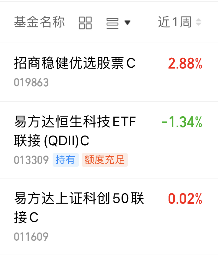 $易方达上证科创50联接C(OTCFUND|011609)$近一周上涨0.02%