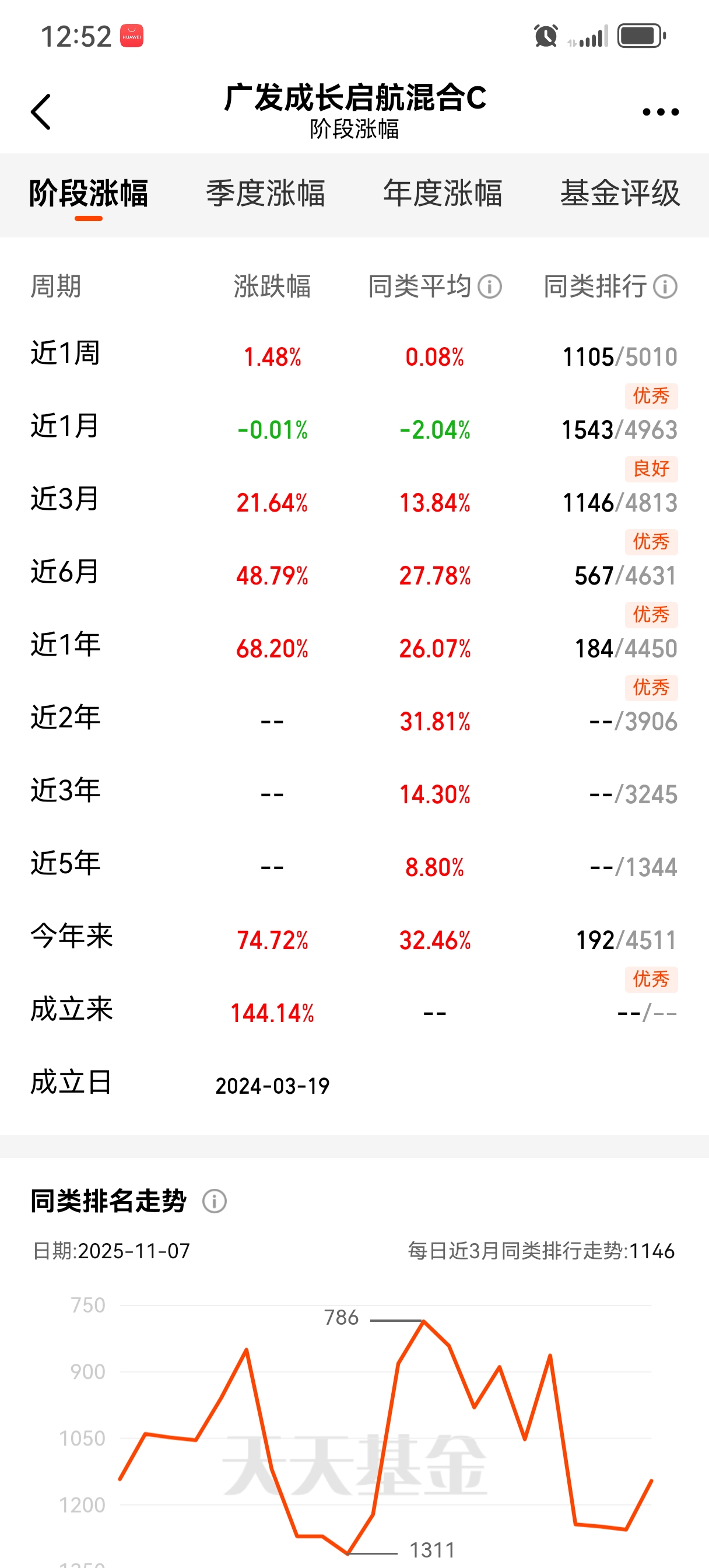 评估一只基金的投资价值,业绩数据是最直接的考量维度。广发成长启航混合C自成立以来,始终保持着远超同类产品的收益水平,同时展现出较强的风险控制能力,形成了"高收益、中风险"的良性特征。