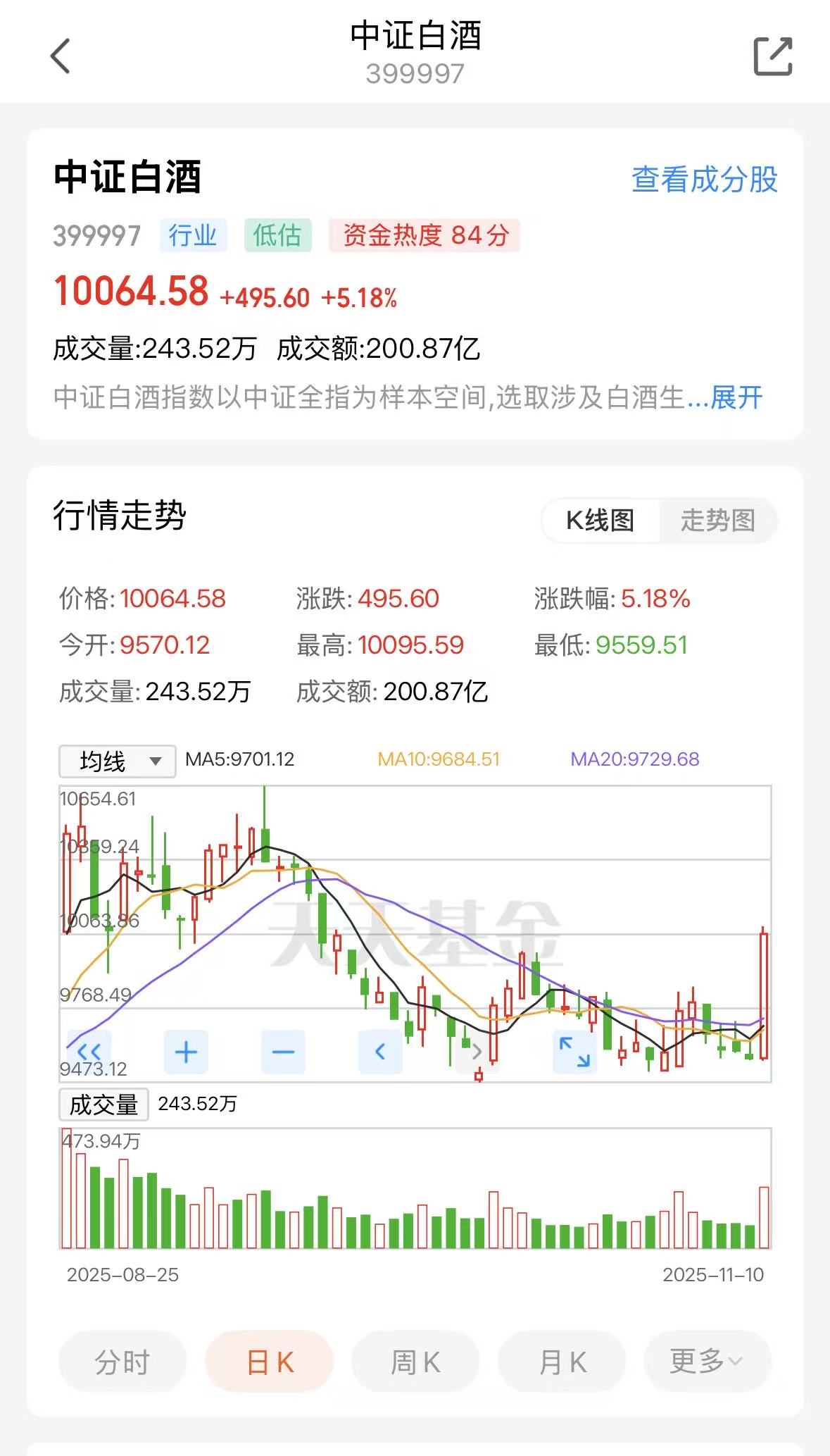 今天科技不怎么样,但是大消费相当可以啊!食品饮料、免税方向大涨,$招商中证白酒指数(LOF)C(OTCFUND|012414)$估值大涨5%,一路拉升!消息面上,czb发布2025年上半年中国财政政策执行情况报告,将继续实施好提振消费专项行动,中证白酒现在处于低估区间,接下来有希望反弹。