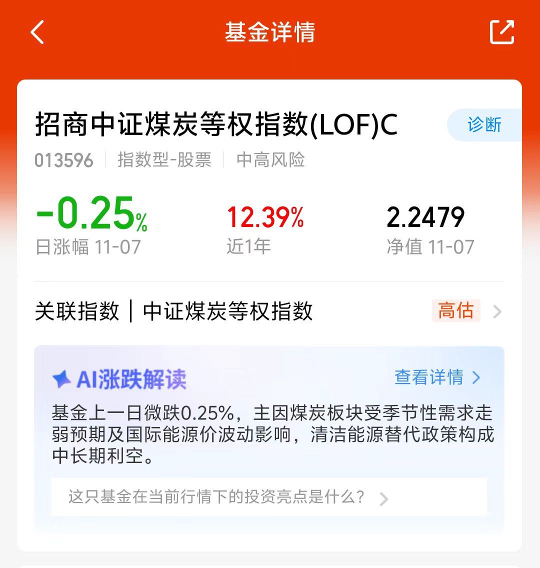 煤炭板块今天表现不错,大盘震荡调整,三大指数涨跌不一,煤炭板块周期性比较强,四季度又到了煤炭周期了,煤炭板块今天逆市上涨!部分煤矿因检修或产量限制,短期供给偏紧,支撑煤炭价格上涨。$招商中证煤炭等权指数(LOF)C(OTCFUND|013596)$近一月涨了17.13%,看好这个方向,我准备分批加仓!