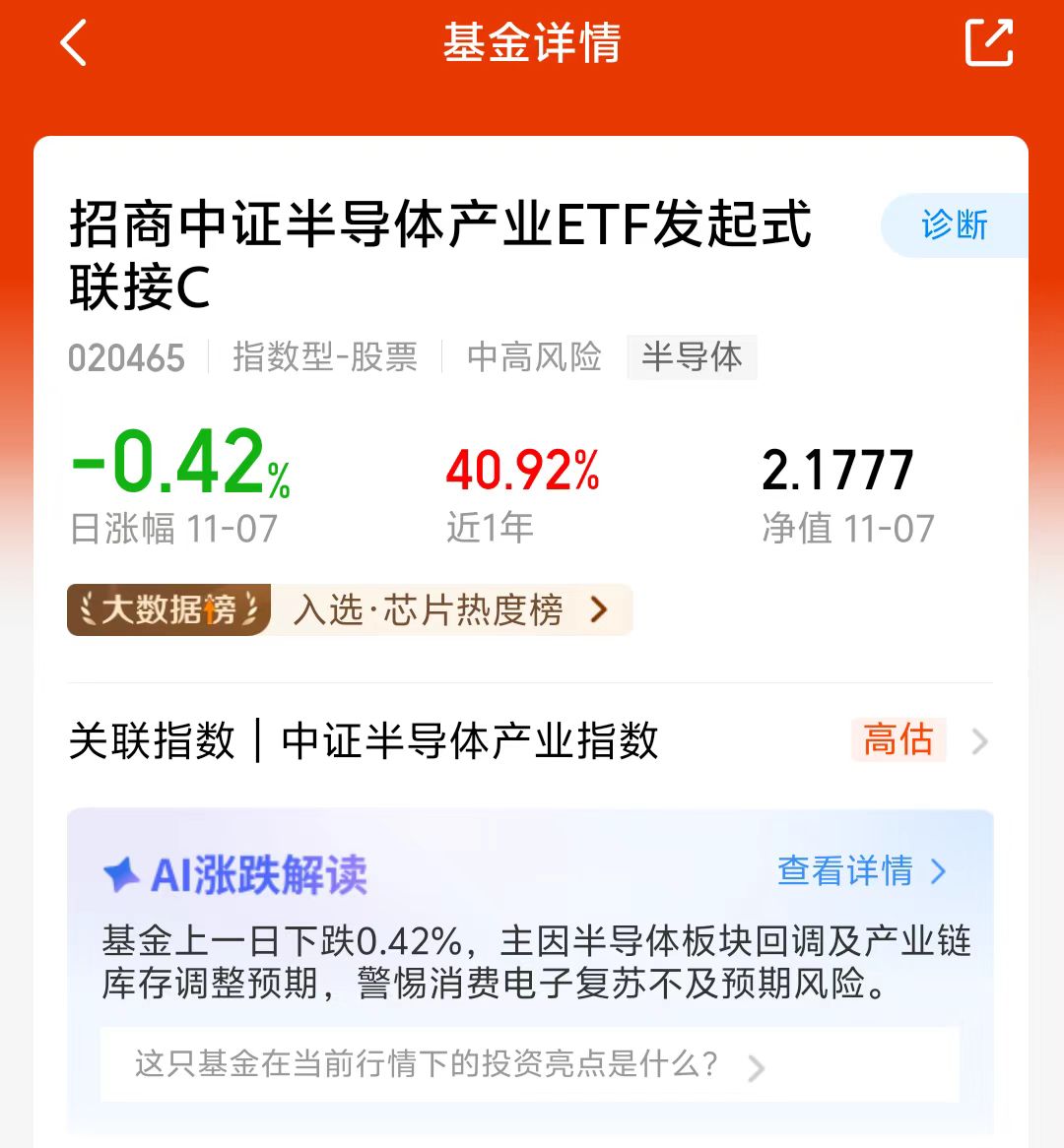 $南方中证半导体产业指数发起C(OTCFUND|020840)$