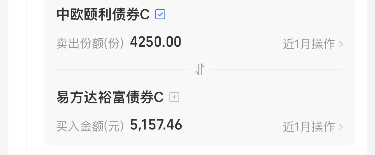 $易方达裕富债券C$ :小王今日上车5000元,这是一只弹性较大的固收+基金,对于我来说低吸也是一个不错的上车方式,再加上目前其持仓有点小回调,所以对于我觉得上车的机会来啦;从最新的第三季度持仓来看,信用债占比76.24%,利率债占比5.83%,配备了19.28%的股票以及17.3%可转债去进攻收益,总体来说该基金也是涨得多的碎得少的基金类型,该基金在行情好的时候爆发力也是比较足,并且拉开长期收益来看,近一年的收益率已经达到了9.59%,所以这样优秀的收益率我也能接受适当波动,低吸也往往能给我带来较好的收益,所以综合考虑我今日准备上车5000,期待后续回暖