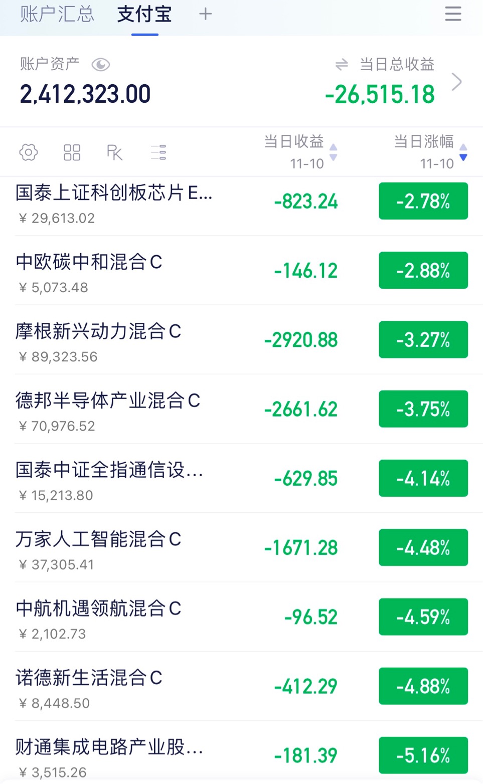 3. C P O混合,上车5000,$国金新兴价值混合C$ 这是一个专注于C P O集成电路与港股通龙头的混合基金,我个人已经累计时长超过六个月,目前盈利超20%,今天C P U半导体芯片集体回调,基金净值跌达到2%了,累计回头达到5%到8%,趁着筹码便宜的机会,今天我第四次上车5000。
