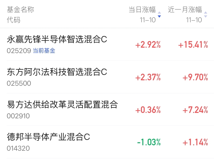 估值播报来啦,今天存储芯片涨势还是挺强的,虽然今天热点在大消费那边,但是大科技板块也有热门板块的,$永赢先锋半导体智选混合C$预估值近3个点咯,今年存储芯片连续涨价,我估计后面空间还有很大,目前这个基金业绩也涨超惊人的业绩,成立两个月都有37%的成绩,还是很强的,后面还有机会继续冲