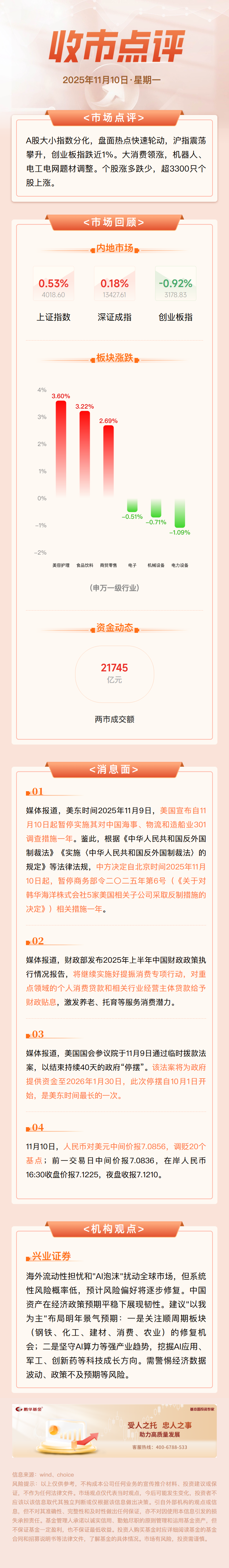 收市点评11.10 沪指收红涨0.53% 大消费领涨