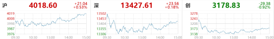 今天,三大指数全天走势分化,上证综指始终偏强走势,午后持续发力。深证成指也在尾盘发力翻红,而创业板指慢了一步,午后跌幅收窄。个股涨跌比为3373:1952,红方占比超6成。
