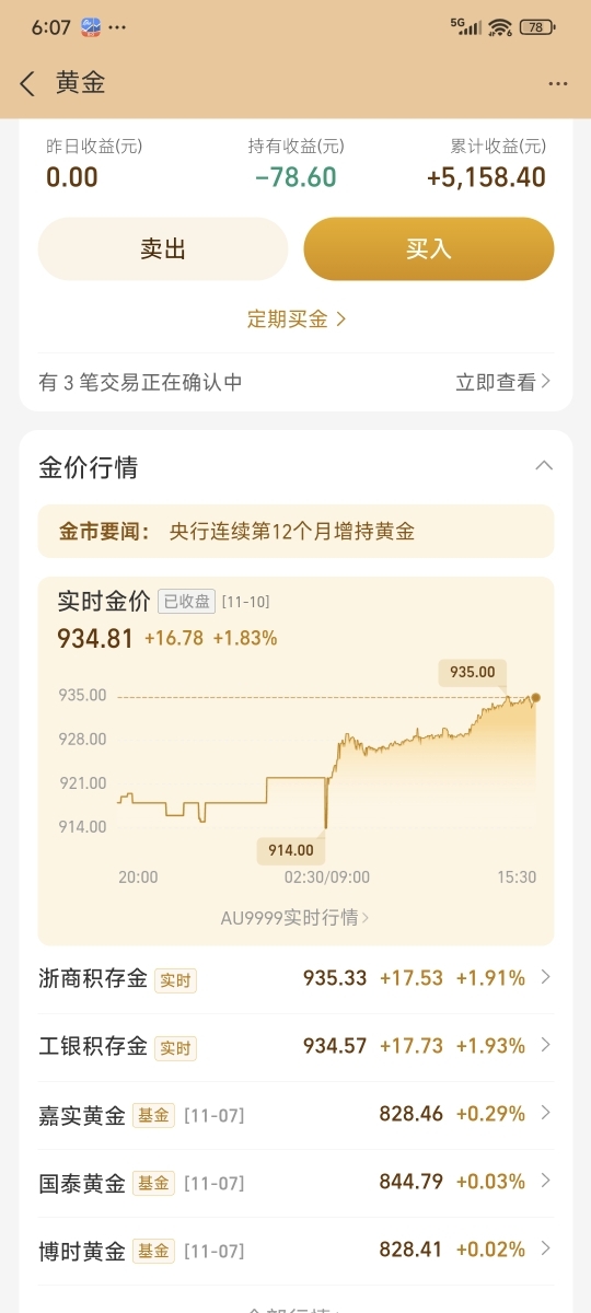 黄金尾盘估值继续拉升,收盘估值涨幅1.83%,金价934.81,今晚更新吃肉了,英英持仓的$嘉实上海金ETF发起联接C$ 近期走势还不错,讨论区还有100-0.58,持仓1000以上有0.88红包可领,短期看美联储12月降息有望,黄金避险属性吸引力增强,继续上车,持仓等待吃肉了。