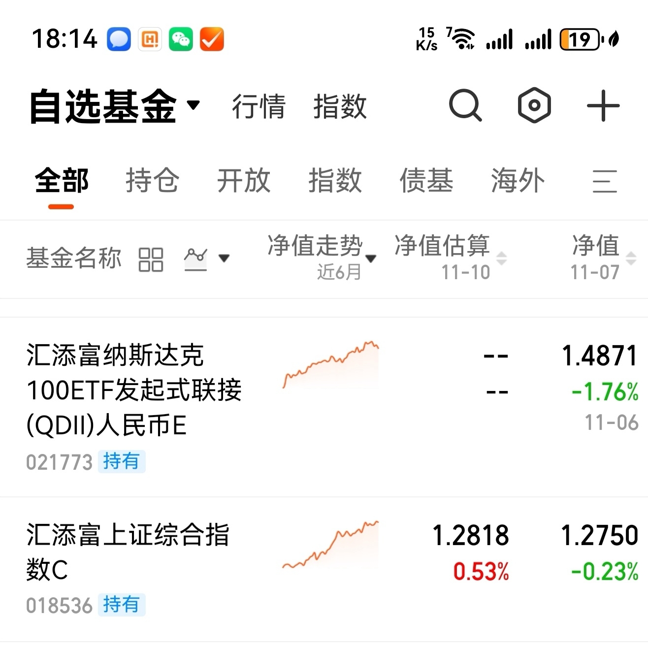 在目前,我就只剩某个美股纳斯达克100指数qdll基金+某股某个上证综合指数这两