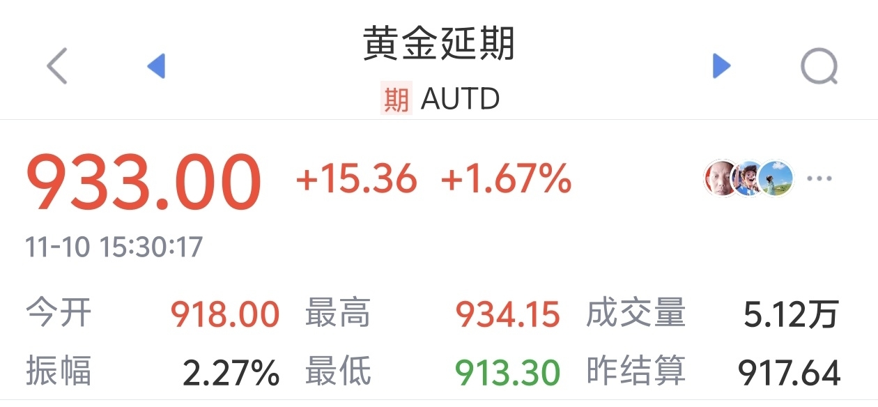 太牛了呀,小伙伴们,今天黄金行情也一路高涨,表现的也是非常的给力,收益率高。今天黄金延期上涨了1.67%,在933的位置,今晚吃大肉,目前也迎来了配置窗口期,配置价值高。