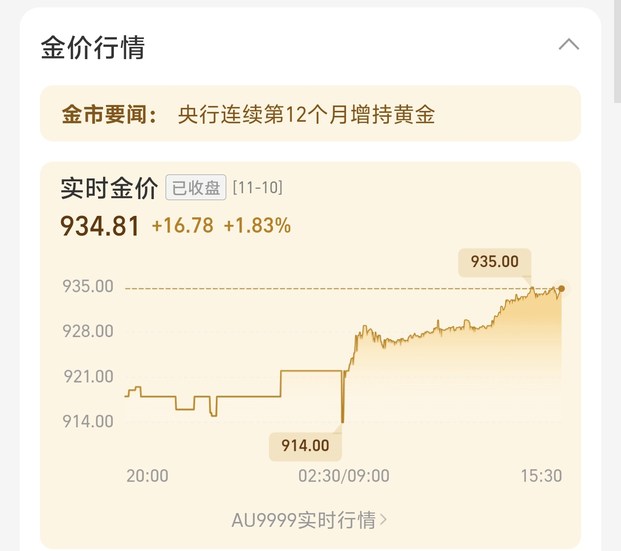 今天黄金行情一路上涨,表现的也是非常的给力。AU9999上涨了1.83%,在934.81的位置。目前黄金的行情依旧处于低位,配置价值凸显。