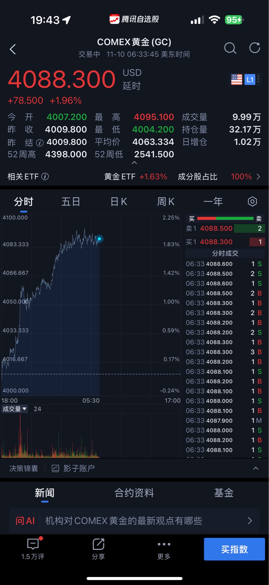 #持仓基复盘日记11.10#昨天说到黄金本周走势有点颓势,一直在3950-4059点附近来回震荡徘徊,目前站稳十日线,上周收了一个光脚阳线,是个好的信号,今天盘中,黄金现货和期货报价均创下11月以来新高。其中,伦敦金现报4047.01美元/盎司,上涨1.16%;COMEX黄金报4055.5美元/盎司,上涨1.14%。但随着上周央妈出手,连续第12个月增持黄金。截至2025年10月末,我国官方国际储备资产(主要由外汇储备和黄金储备构成)中黄金的占比为8%,明显低于15%左右的全球平均水平。这一差距,也暗示后续黄金储备仍有不小的提升空间。