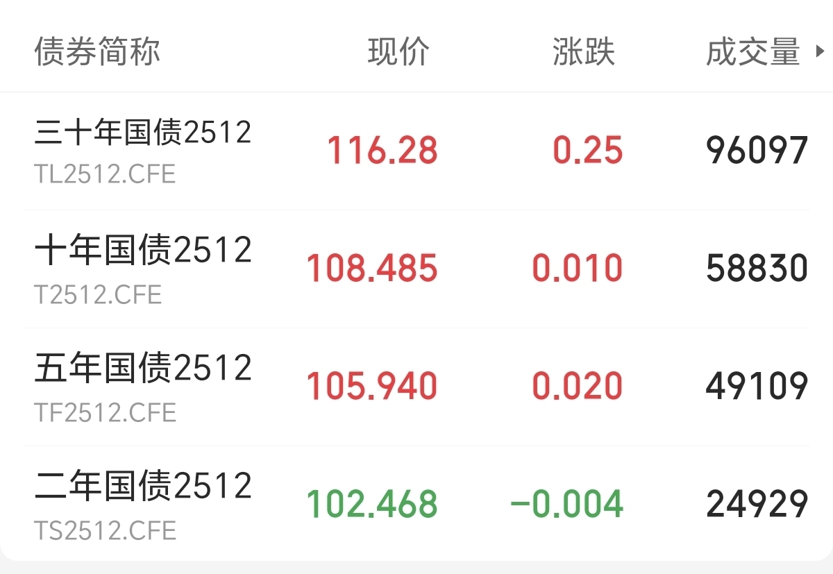 利率债、信用债偏晴天,中长久期国债变现较好。1年期国债活跃券上行幅度较大,价格下跌,二年国债期货2512略有下跌。