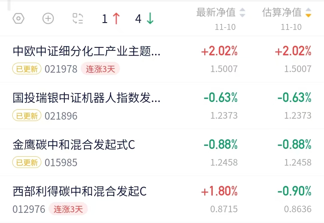 $中欧中证细分化工产业主题指数发起C(OTCFUND|021978)$逆势收涨2.02%,这一波反弹行情是时候上车化工板块了,详情页还有红包可用,爱了爱了~