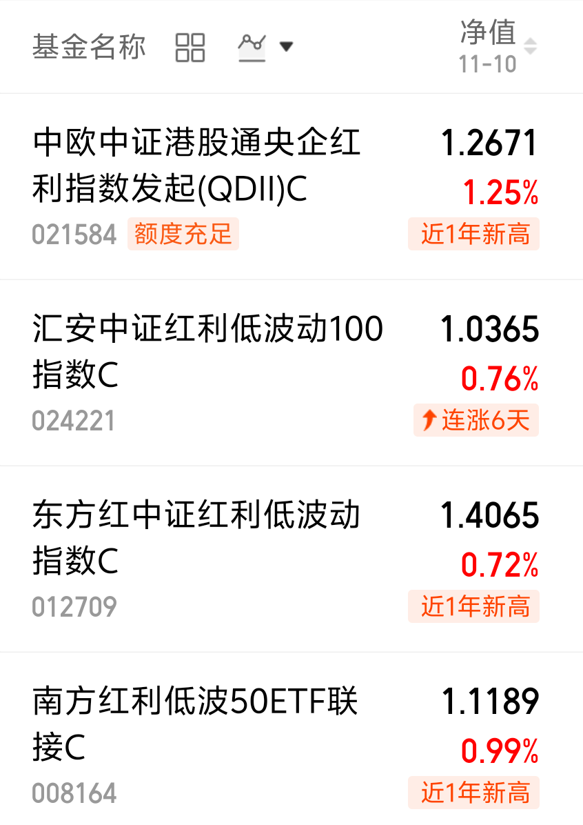 $中欧中证港股通央企红利指数发起(QDII)C(OTCFUND|021584)$今天涨了1.25%