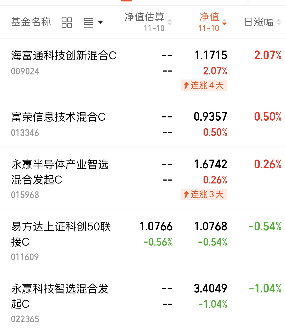 $海富通科技创新混合C(OTCFUND|009024)$涨2.07%,已经连续上涨4天了!海富通这个科技混合基还可以,各个阶段的业绩都不错。