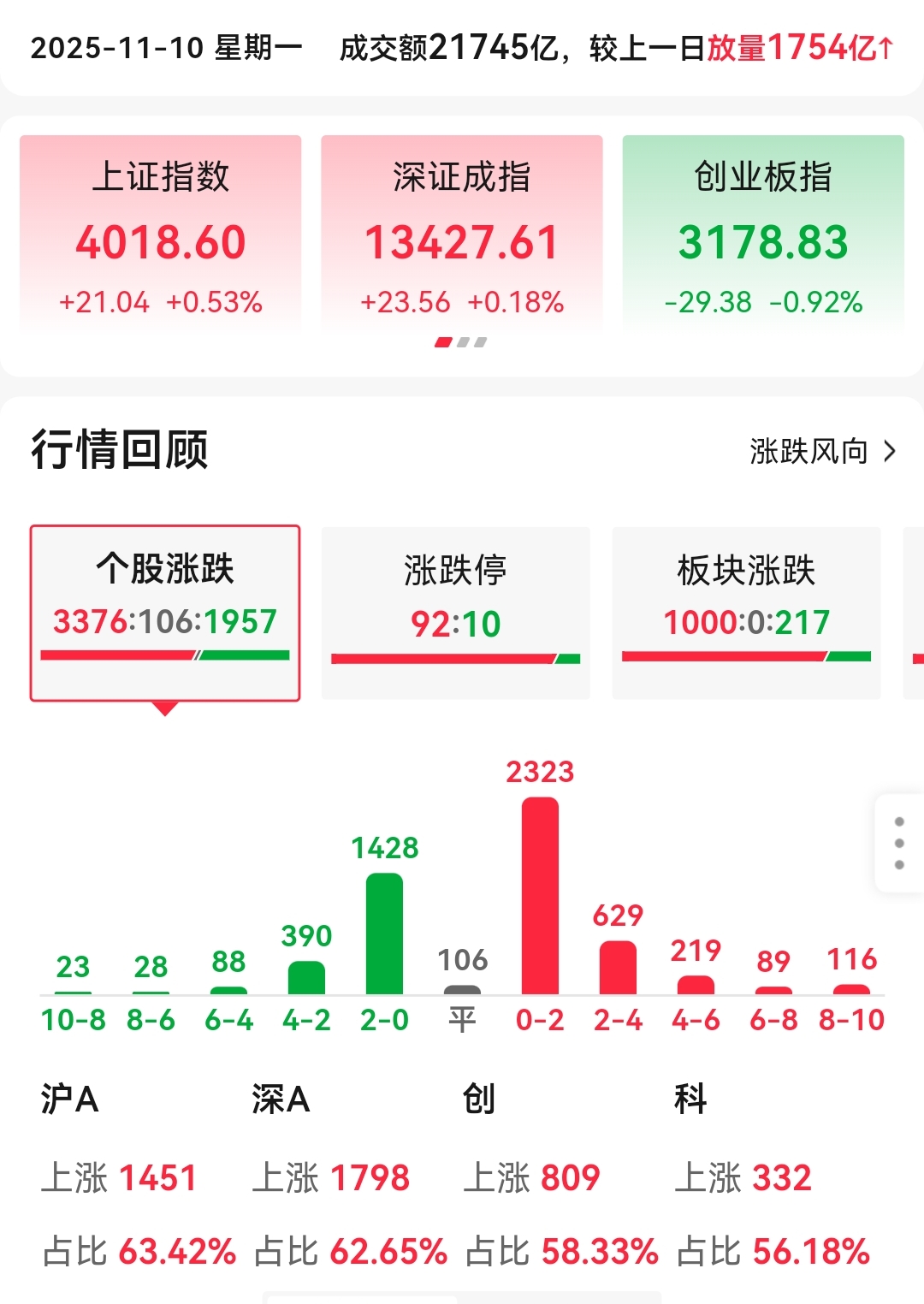 成交量倒是还不错,沪深两市干到21745亿,比昨天多了1754亿,资金活跃度拉满。个股看着热闹,3300多只上涨,近百股涨停,但赚钱效应全扎堆在消费板块里。