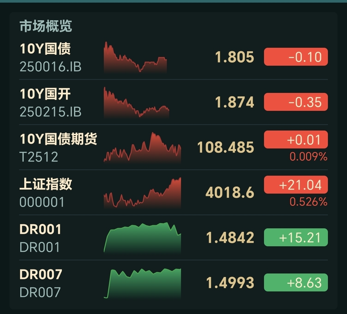 周末公布的CPI、PPI数据偏强,利好权益市场。但股债跷跷板效应并未发生,10年国债活跃券016下行0.1BP,收益率1.805%,中证全债指数上涨0.04%,债市整体晴天,利率债短端稍差一点,1年期国债活跃券收益率上行2.15BP。