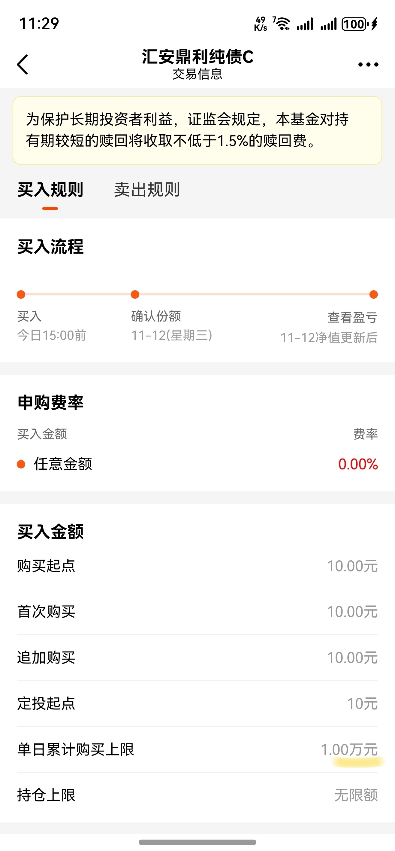 结果观察这个债基,在目前每天限额只能选择买1万了。