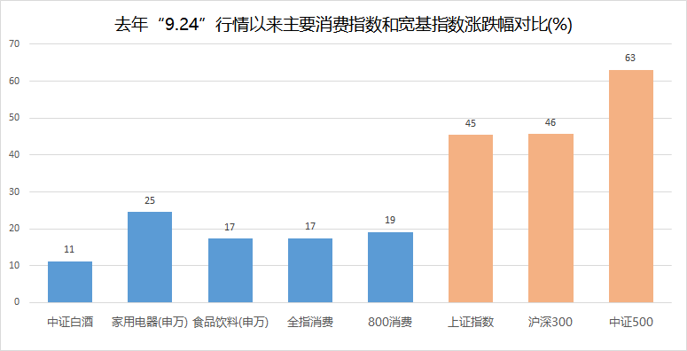整体上看,消费最近的涨幅是严重落后于主流宽基指数的,这有点不合理,毕竟“9.24”以来的行情规模不小,按理说每个行业至少能够获得市场平均的收益,所以消费股的未来行情还是比较值得期待的。我还是会继续配置一部分消费,主要是持有白酒ETF和家电ETF。持有白酒是因为这门生意很好,成本低、利润高;持有家电,是因为这是国家政策补贴和支持的重点方向。