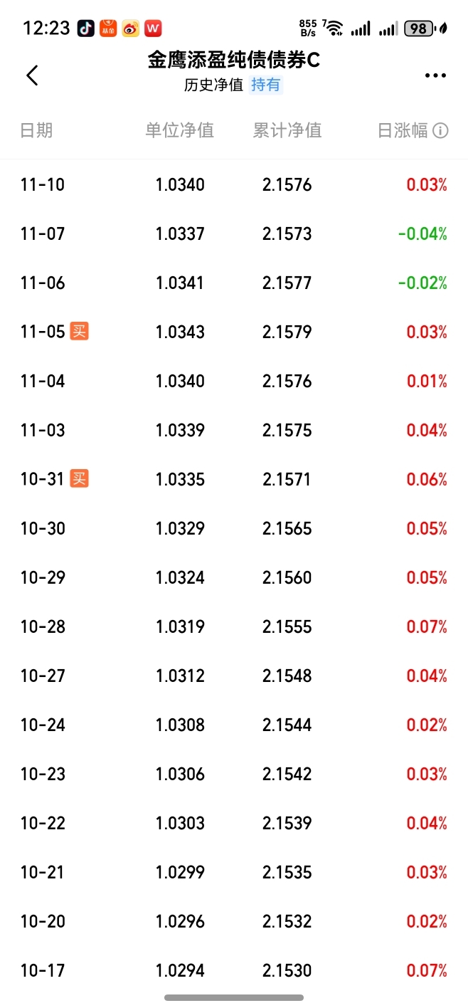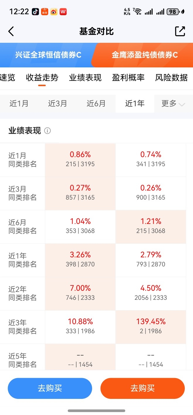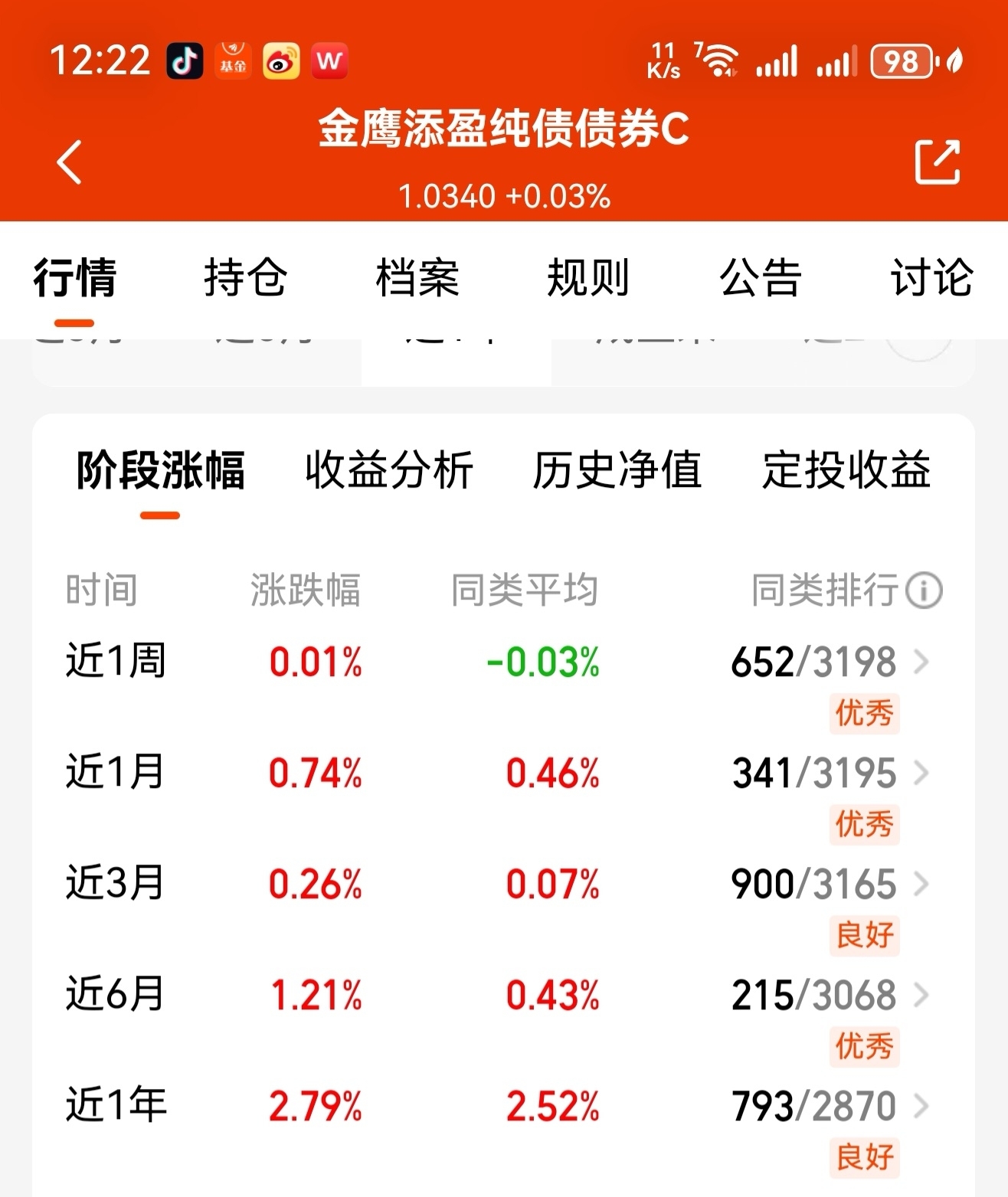 在最近这几天的时候,观察某证全球、某鹰,这两个债券基金在上周最后几天债行情转差调