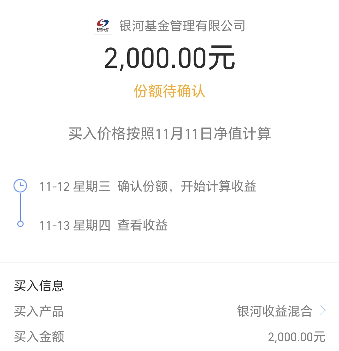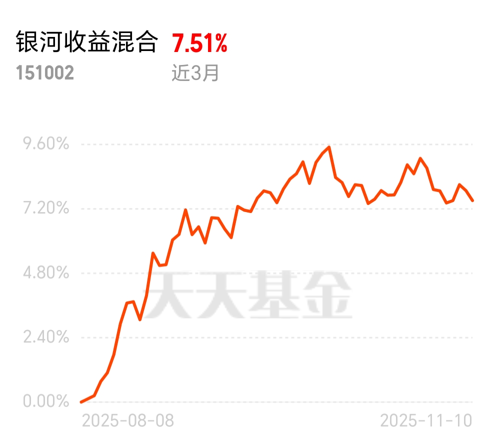 银河收益混合是一只晨星评级四星的固收加,定位是纯债打底,权益增厚收益的低波动混合债。从持仓看,他的债券占比78%左右,其中信用债有52%,利率债有25%,可转债只有0.84%,权益部分仓位占比19.99%, 主要聚焦科技、新能源、制造能热门赛道。近三个月收益陡峭,怒收751个蛋,穿越牛熊近-年收益率8.97%。最近科技调整较多,不过小半个月的调整马上就要结束了,科技牛依然是后期主线,现在的调整是为了后续更好的拉升。我个人今天逢低补仓2000元等反弹。