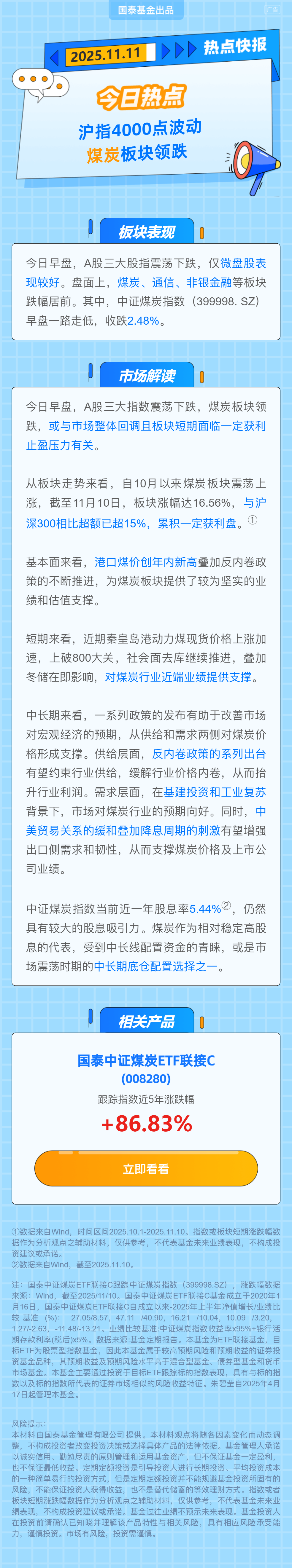 【热点快报】沪指4000点波动 煤炭板块领跌