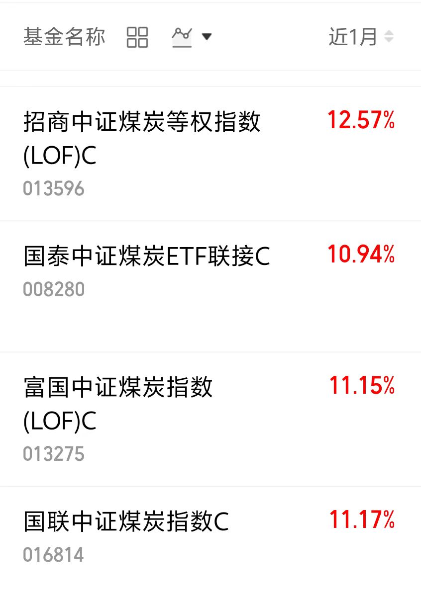 $招商中证煤炭等权指数(LOF)C(OTCFUND|013596)$近一月涨了12.57%