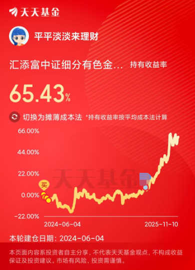 虽然今天市场行情回落,但是我看截至盘中有色金属赛道企稳回升,感觉现如今行情赛道轮动还是继续跟有色金属赛道吃肉了,目前我持有$汇添富中证细分有色金属产业主题ETF发起式联接C(OTCFUND|019165)$已经4连涨收益65.43%属实不错。