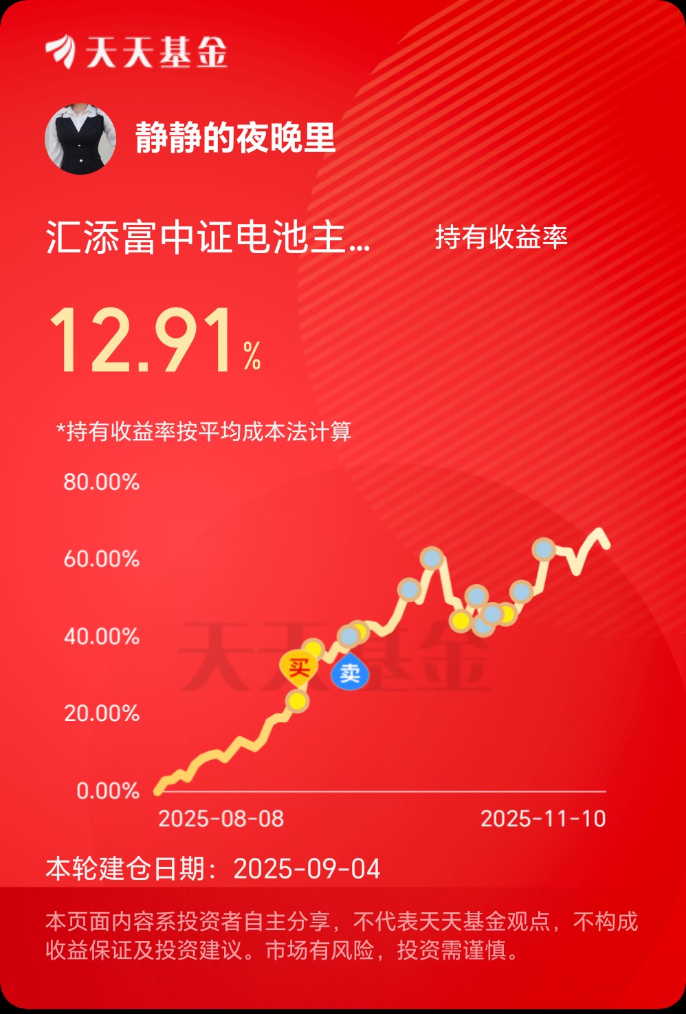 今日大盘行情呈现高开低走趋势,其中科技赛道跌幅较为明显,个股也是呈现分化行情,而电池赛道再次开启反弹动力,展现出逆势走强动力!而从政策方面来看,“十五五”规划明确新型储能战略地位,政策红利持续释放,从而推动储能电池业绩不断增长,特别是我持有的$汇添富中证电池主题ETF发起式联接C(OTCFUND|012863)$紧密跟踪中证电池指数,精准布局储能+固态双主线,固态电池含量超42%,在利好与技术的双轮驱动下,近期业绩迎来持续爆发!