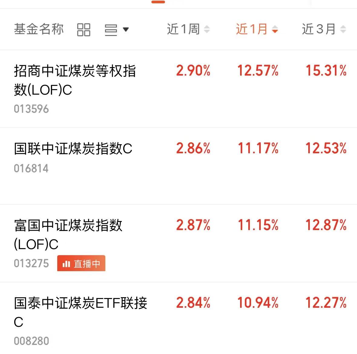 $招商中证煤炭等权指数(LOF)C(OTCFUND|013596)$近一月12.57%