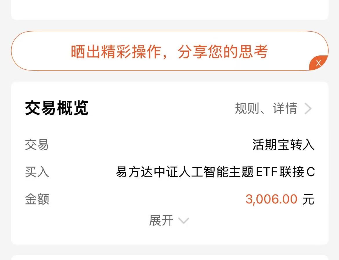 今天大盘又还是震荡调整,科技方向继续吃面,人工智能跌幅还是比较大的,不过当下人工智能+行动扶持力度大,还有全球AI市场规模也不断的增长,科技在发展,人工智能前景不错的。易方达中证人工智能主题ETF联接C是紧密跟踪人工智能指数的,近一年收益率53.37%,长期业绩优秀。$东方人工智能主题混合C(OTCFUND|017811)$ #工信部:深入实施“机器人+”应用行动# #两部门:2035年新型电力系统基本建成# #大消费板块逆市拉升!行情能否持续?#