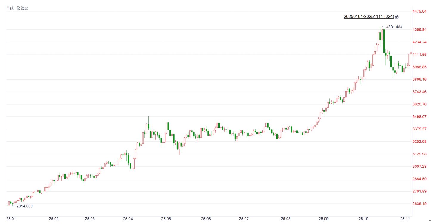 注1:数据来自iFinD,截至2025.11.11 10:00。金价短期涨跌幅列示仅作为市场行情分析的辅助材料,仅供参考,不构成投资建议或承诺,需注意可能存在的回调风险。