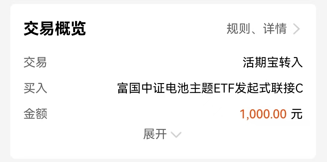 电池:麦爸加仓1000元$富国中证电池主题ETF发起式联接C(OTCFUND|017223)$