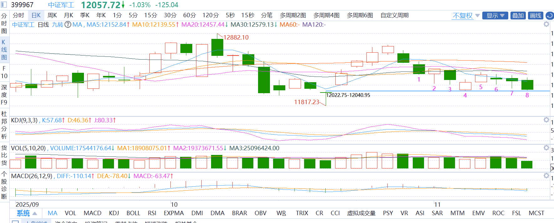 军工板块:麦爸认为目前板块缩量回调,维持区间震荡,无明显破位或突破信号。麦爸延续“躺平”策略,选择不动。