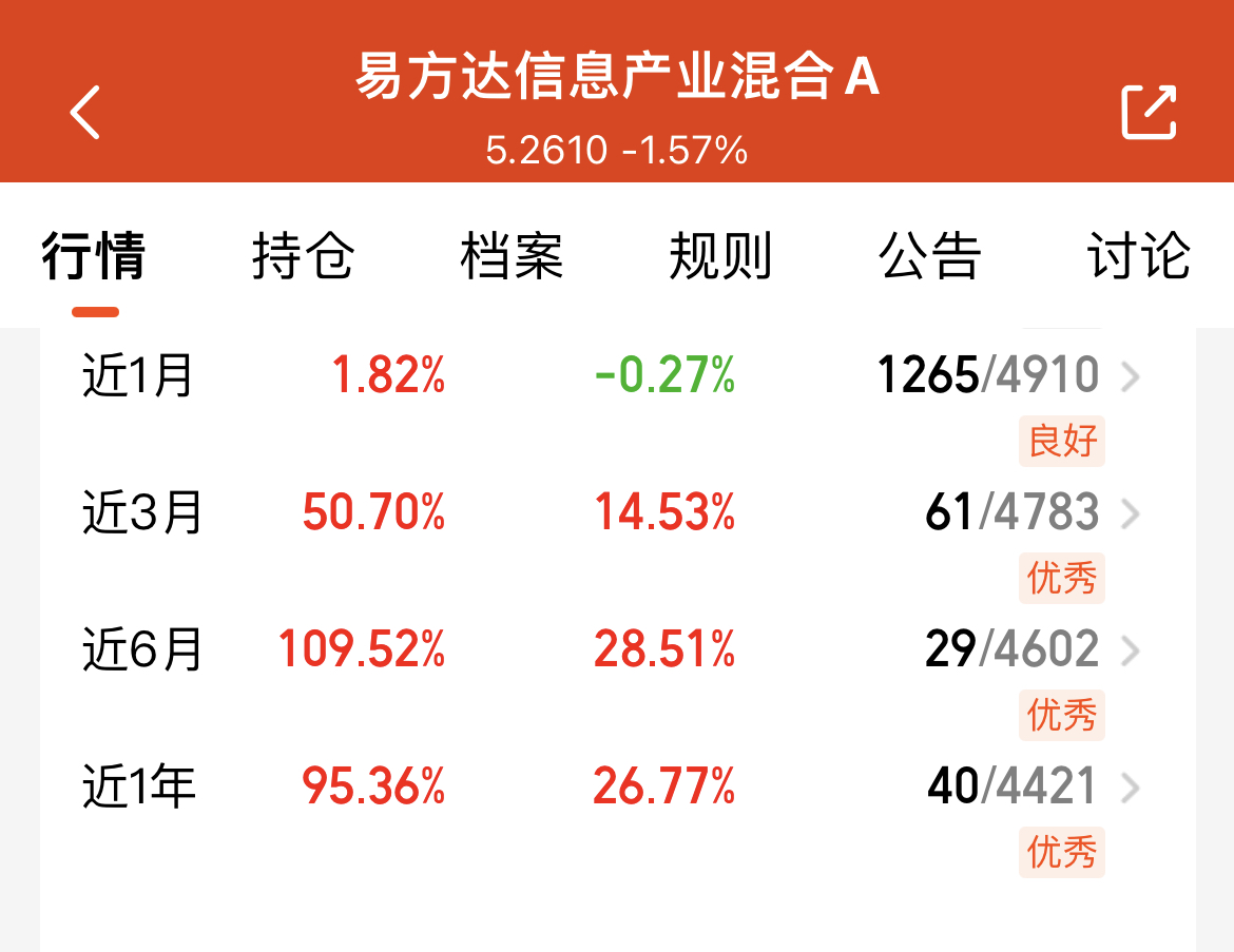 最近股市震荡里沪指刚站上4000点,科技板块虽在回调,但弹性向来不弱。我手里的$易方达信息产业混合A(OTCFUND|001513)$它和我持有的$易方达全球成长精选混合(QDII)人民币C(OTCFUND|012922)$是同一位基金经理管理,这位经理擅长控回撤,策略也稳。这只基聚焦科技主线,不像QDII受额度限制,现在额度充足,业绩也一直很亮眼。科技长期逻辑没改,借这只基布局国内科技,既能跟上板块反弹节奏,也能靠经理的调仓能力稳收益,打算定投加点仓。