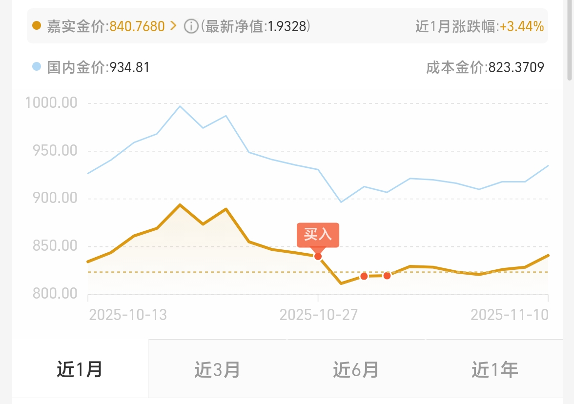 黄金今天终于苦尽甘来,个人前期低吸的$嘉实上海金ETF发起联接C$,今天终于有收