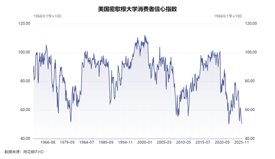 尽管美国政府重启迎来进展,但长达近两个月的停摆已对美国经济带来了损伤,这有望成为金价中长期动力。上周五,密歇根大学发布美国11月份消费者信心指数为50.3,低于市场预期的53.2,低于前值53.6,跌至接近历史最低水平。美国财长贝森特近日称,如果“停摆”持续下去,美国今年第四季度“经济增长将砍半”。美国联邦政府停摆带来宏观不确定性风险,有望驱动金价上行。