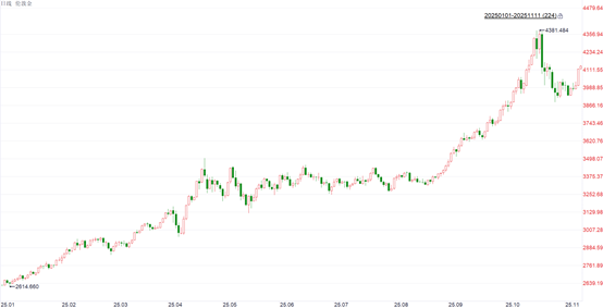注1:数据来自iFinD,截至2025.11.11 10:00。金价短期涨跌幅列示仅作为市场行情分析的辅助材料,仅供参考,不构成投资建议或承诺,需注意可能存在的回调风险。