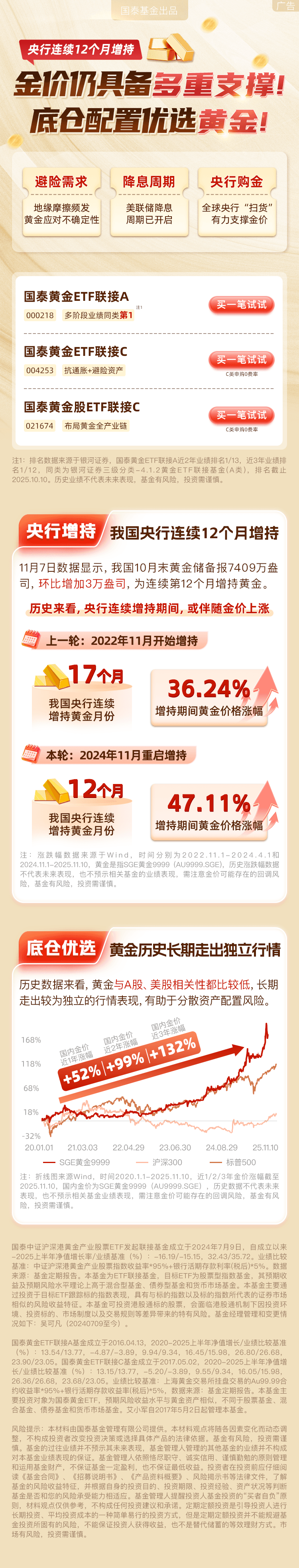 $国泰黄金ETF联接A(OTCFUND|000218)$ $国泰黄金ETF联接C(OTCFUND|004253)$ $国泰黄金股ETF联接C(OTCFUND|021674)$