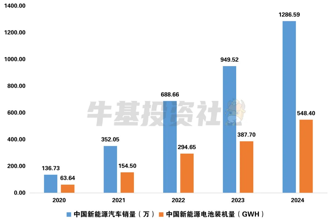 2024年,中国新能源汽车销量达1286万辆,较2020年增长超8倍;动力电池装机量达548GWh,较2020年增长761%。尽管渗透率已显著提升,但在全球电动化浪潮中,电池需求仍未见顶。