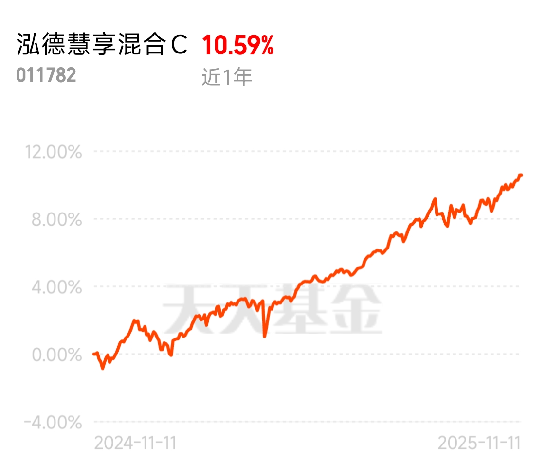 行情波动反复的当下,泓德慧享今日表现平稳无回撤,近1年收益10.59%。这款固收