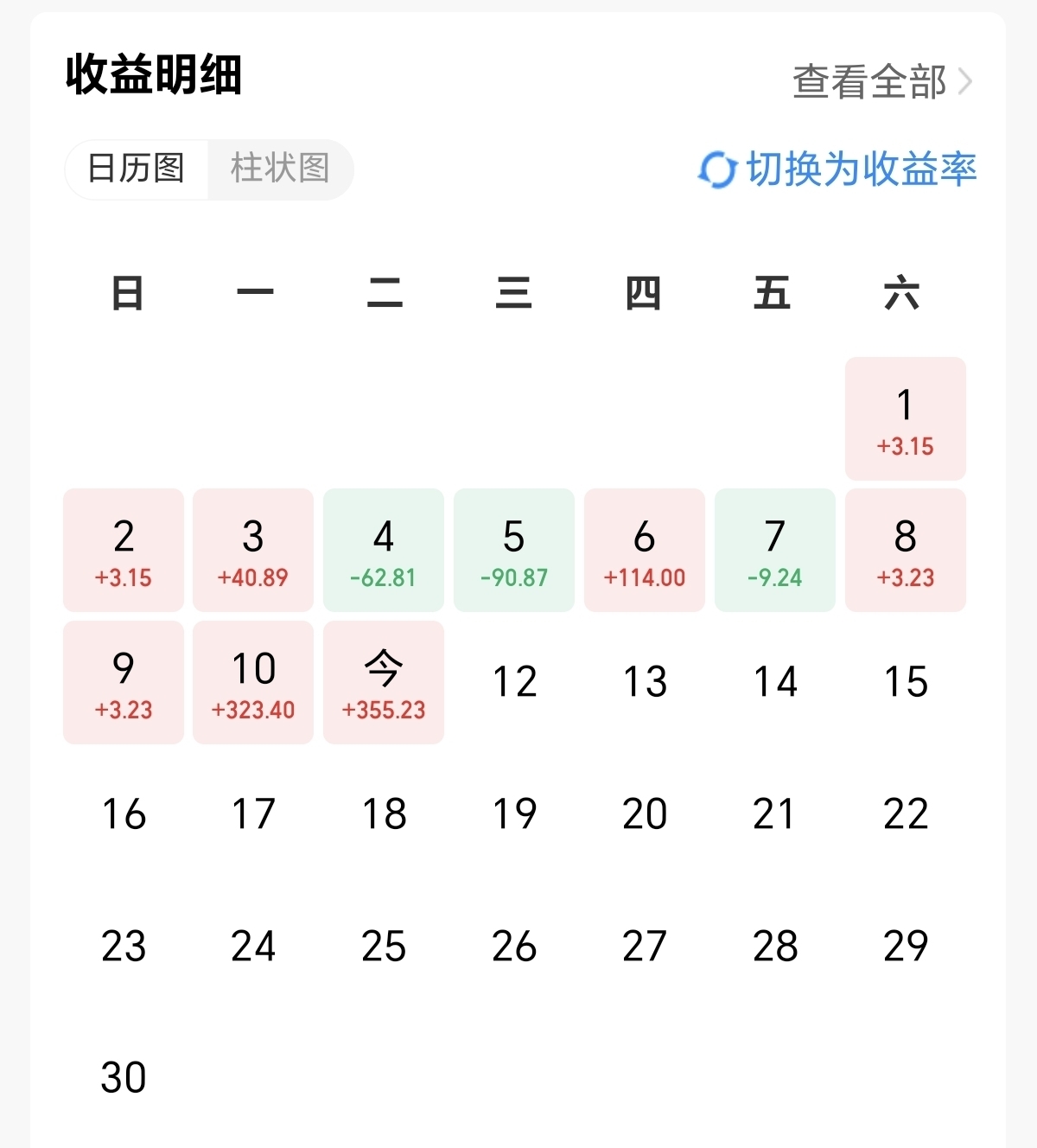 今天赚了300多,债基组合收蛋9个,主要是$国泰黄金股ETF联接C$、$建信富时