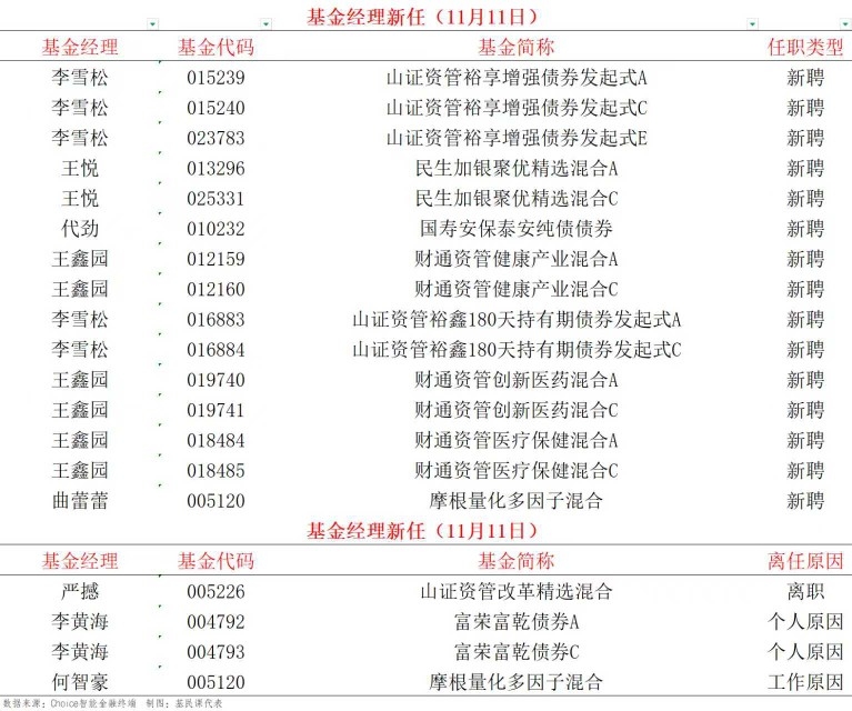 11月11日基金经理变更公告